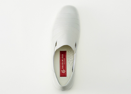 パールがかったオフホワイトの革を使用したデザインで、医療従事者にも履きやすいさまざまな機能も取り入れた、サロンドグレーから誕生した新しいラインナップです。