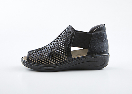 つま先が開いたオープントゥデザインと涼しげなパンチングが絶妙なバランス。