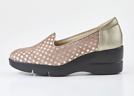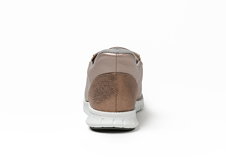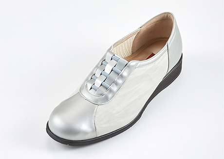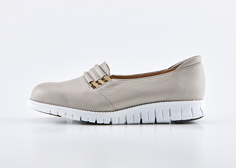 甲のギャザーデザインにゴムをあしらって、足の形にやさしくフィット。