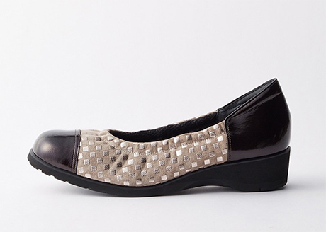 ほんのりと光沢感のある格子模様の革に安定感のある厚底をプラス。
