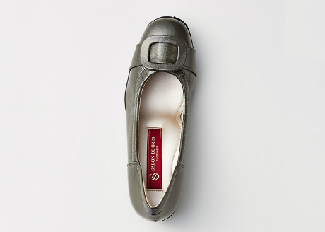 主張しすぎないのに確かな存在感を放つ革巻きバックルのパンプス。