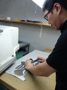 革の検品の次はパーツ毎の裁断です。